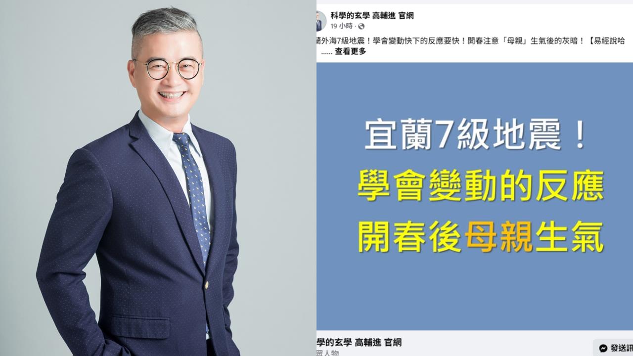知名命理專家高輔進隨即運用易經進行卜卦,結果卻讓他相當震驚。他在臉書透露,起卦後得到的是「頤卦」,其卦象含義代表著「吞噬」之意;而透過太極空間取卦的方式,更得出「空亡卦」這個極為不吉的卦象,意味著「巨大的不利局面」即將來臨,讓他當場驚呼「糟糕了」。這已是繼本月台南高雄發生四連震,以及台東接連多次地震之後,他第三度卜出空亡的凶險卦象。