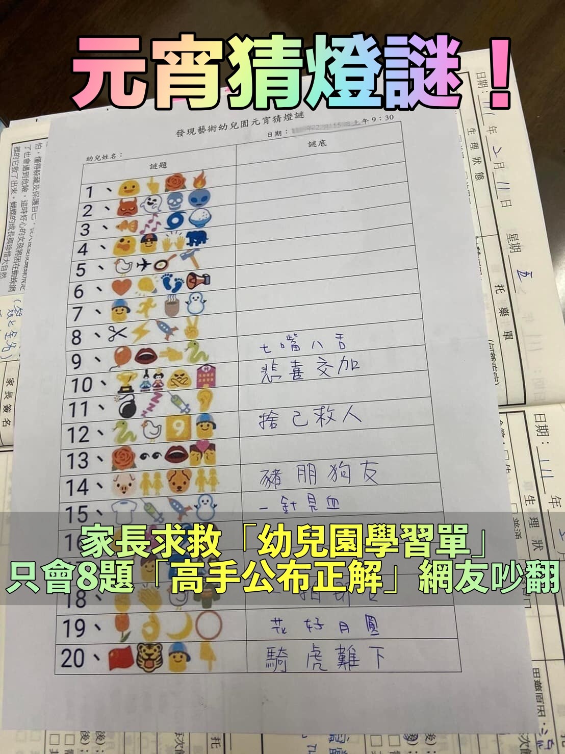 元宵猜謎難倒全網!家長見「幼稚園兒學習單崩潰」解不開急求救 「專家公開完整解答」下秒卻惹爭議